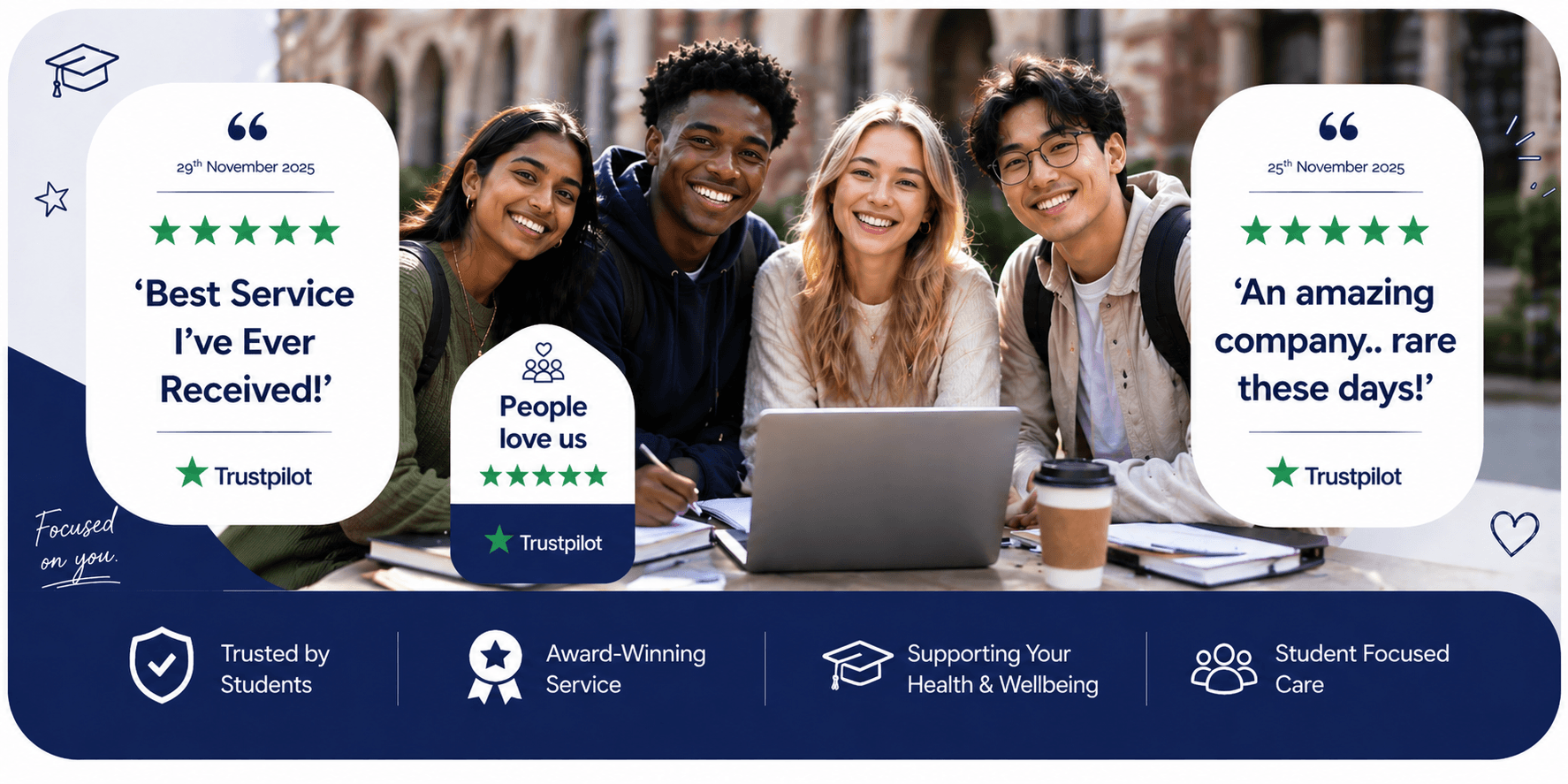 Our experienced medical team supports over 10,000 students every year, working with universities, colleges, and schools across every UK university and college, as well as hundreds worldwide. From King’s College London and University College London to London School of Economics, University of Manchester, University of Glasgow, University of Liverpool, and University of Edinburgh — these are just a few of the universities where the students we support are based.